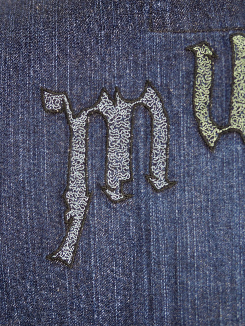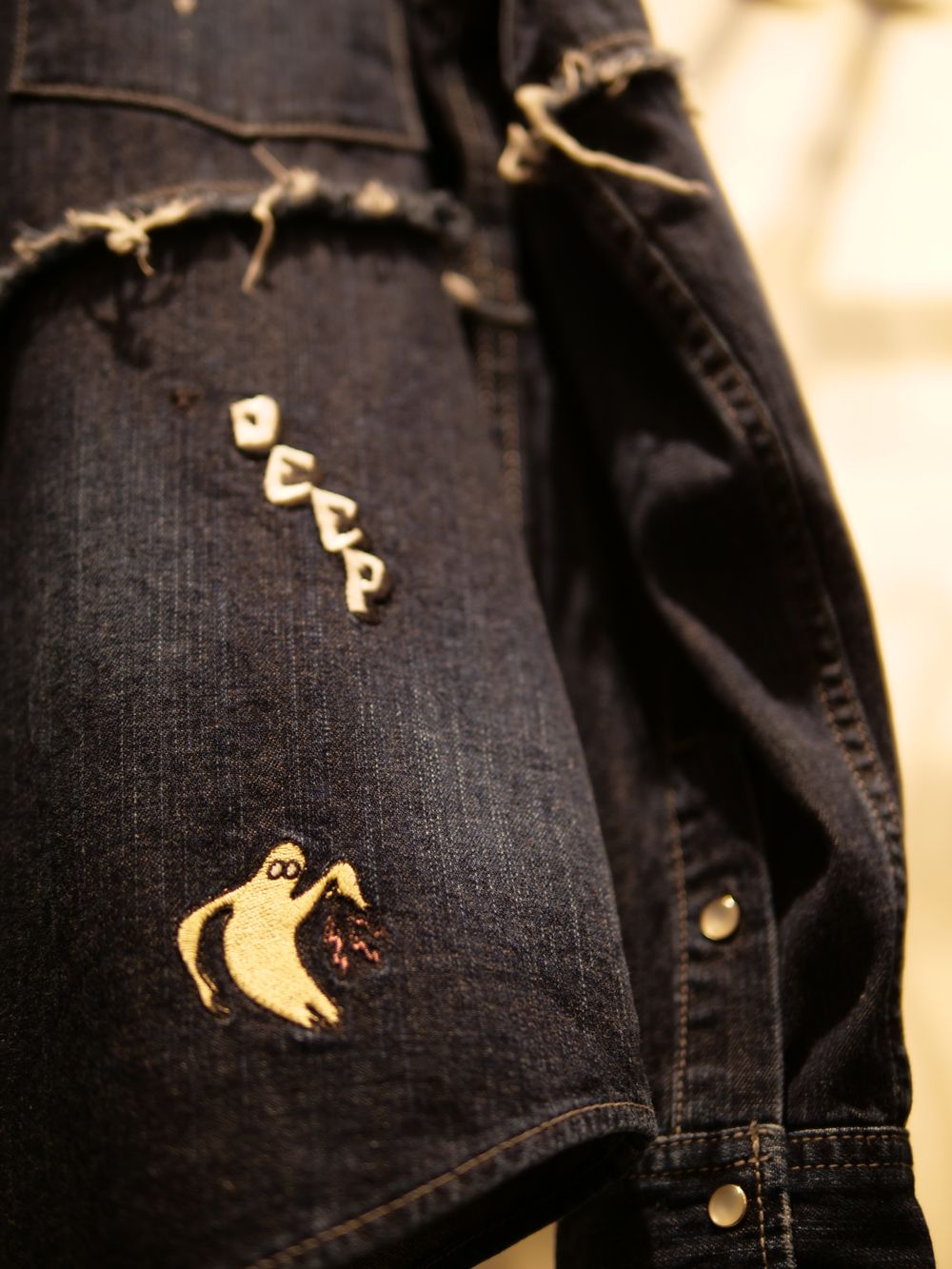 【独特なカッティングが目を惹く】UNISEX / DENIM SHIRT / 刺繍デザイン / デニム素材 / ハンドペイント / ハンドメイド