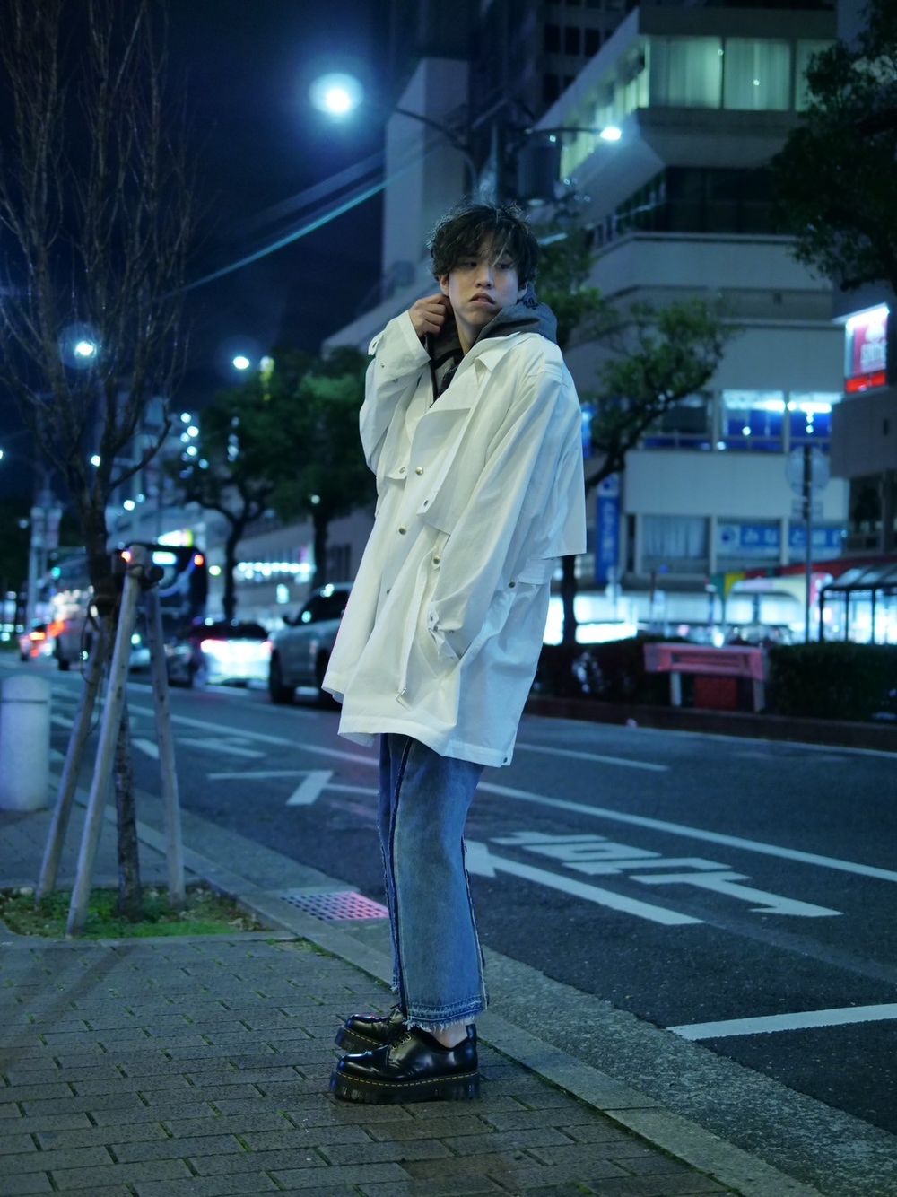 つなぎ目は”インサイドアウト”のような技法を採用し、裏側の余った生地が表側に出てくるようなデザインに。裾は”カットオフ”に仕上げ、ボトムスで大事な部分の裾に動きを付けています。