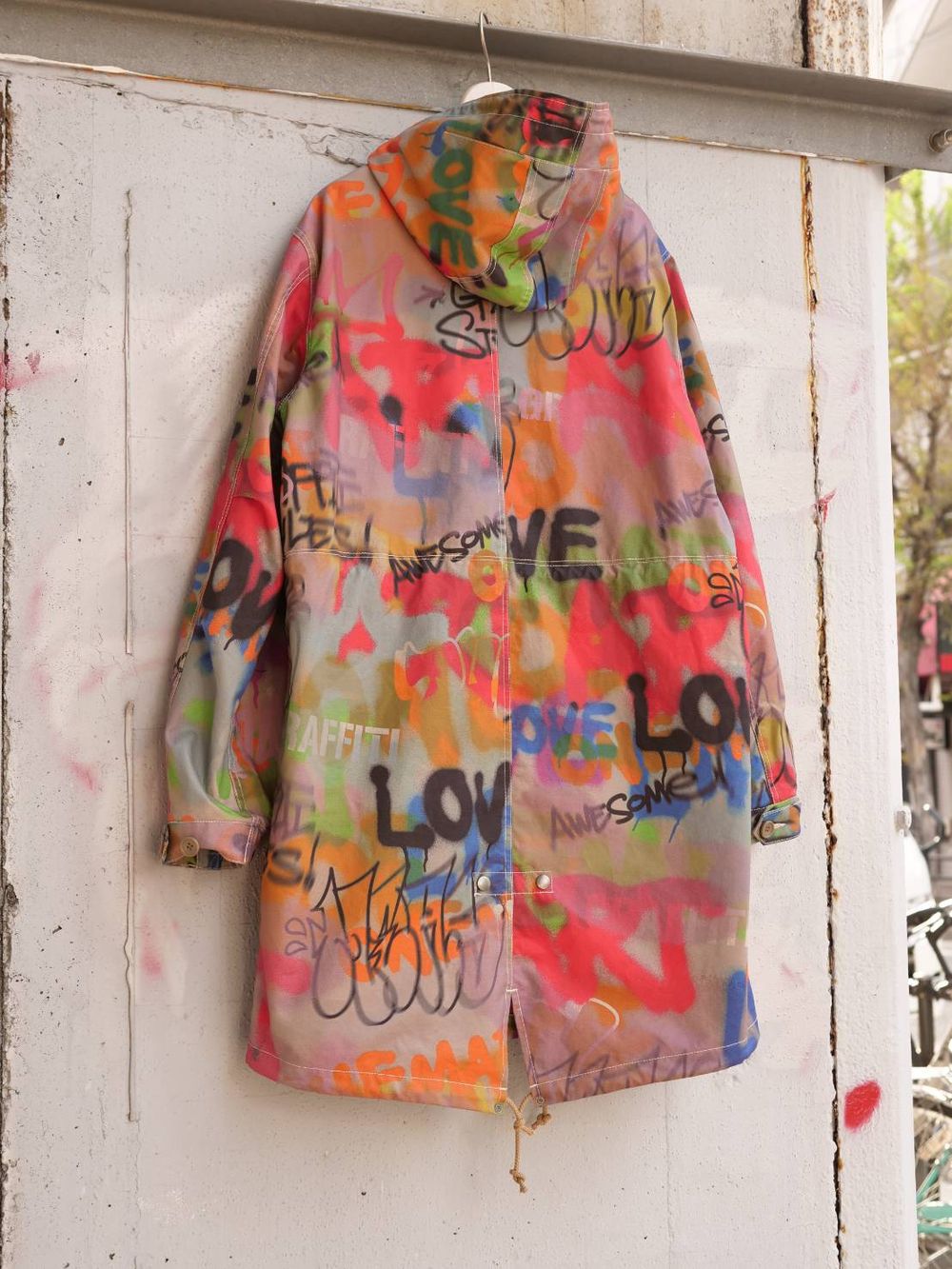 画家でもあるデザイナー MIKIO氏 が描き下ろした原画を特殊プリントした、アート性の高い一着です。大人が日常で着られる“特別感”と、ユニセックスで楽しめる汎用性を兼ね備えています。