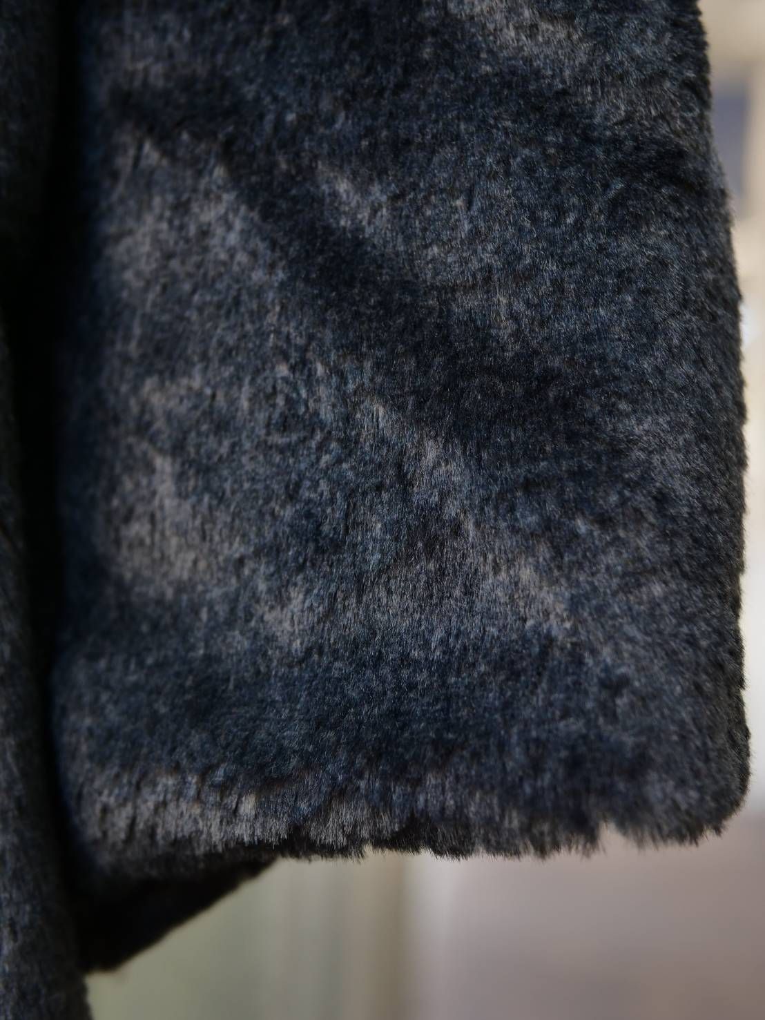 真っ白なファーをベースに、 表面のみをスプレーで黒く染め上げる特殊な染色技法を採用。 根本に残る白(グレー)が、 単なるモノトーンでは終わらない奥行きとニュアンスを生み出し、 上品さと個性を兼ね備えた存在感を放ちます。 量産では再現できない、 手作業ならではの色のムラや濃淡も、 この一着の魅力の一部です。
