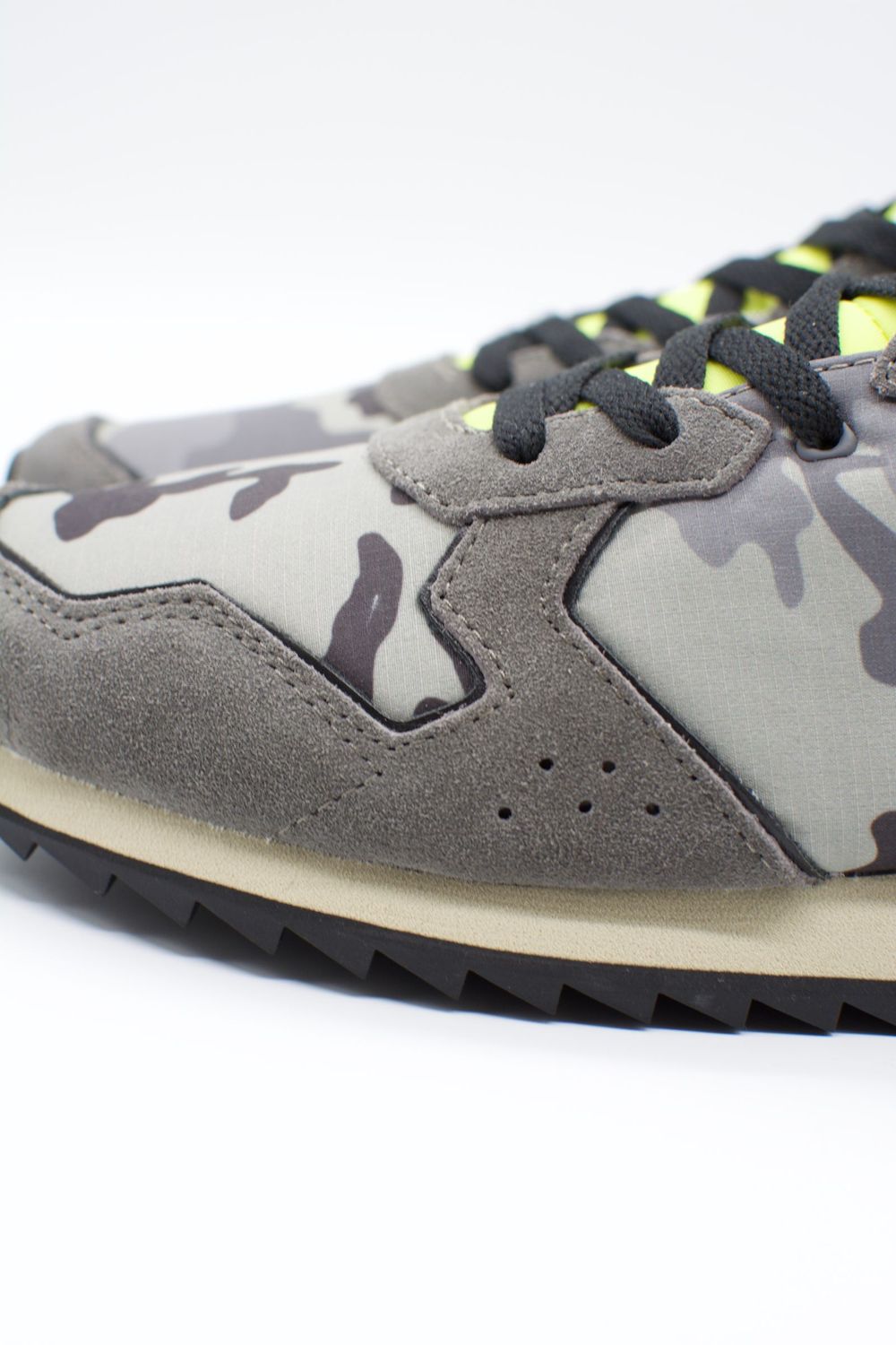 スウェード×ナイロン×レザーの異素材コンビネーションで、ランニングタイプのスポーティなフォルム。クラシックでレトロな雰囲気もありながら、スタイリッシュなディテールはカジュアル・スポーティーはもちろんですが、ドレスの外しにも合わせやすいアイテムです。
