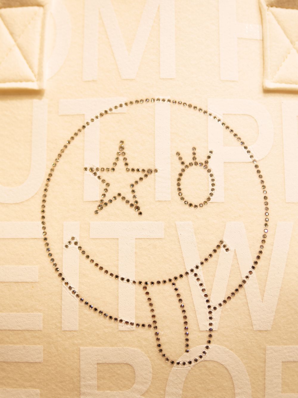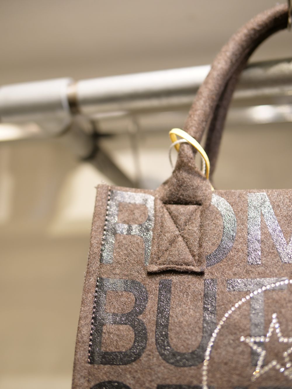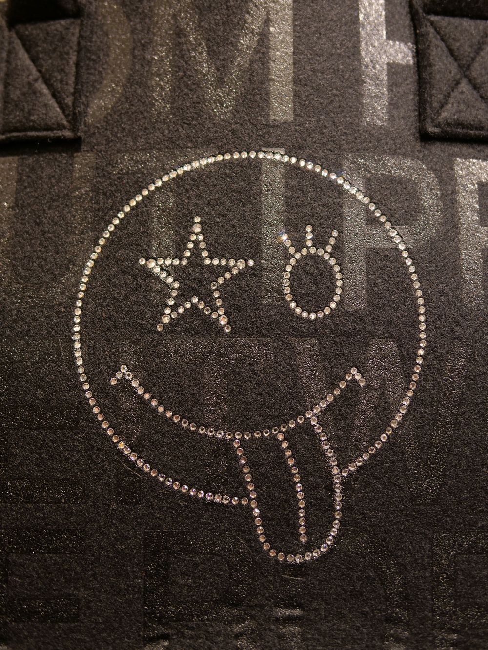 現代アートの作家としてもカルトなファンを持つデザイナーMIKIO氏によるザラザラした独特な風合いのハンドプリントやスワロフスキーが目を惹く作品。