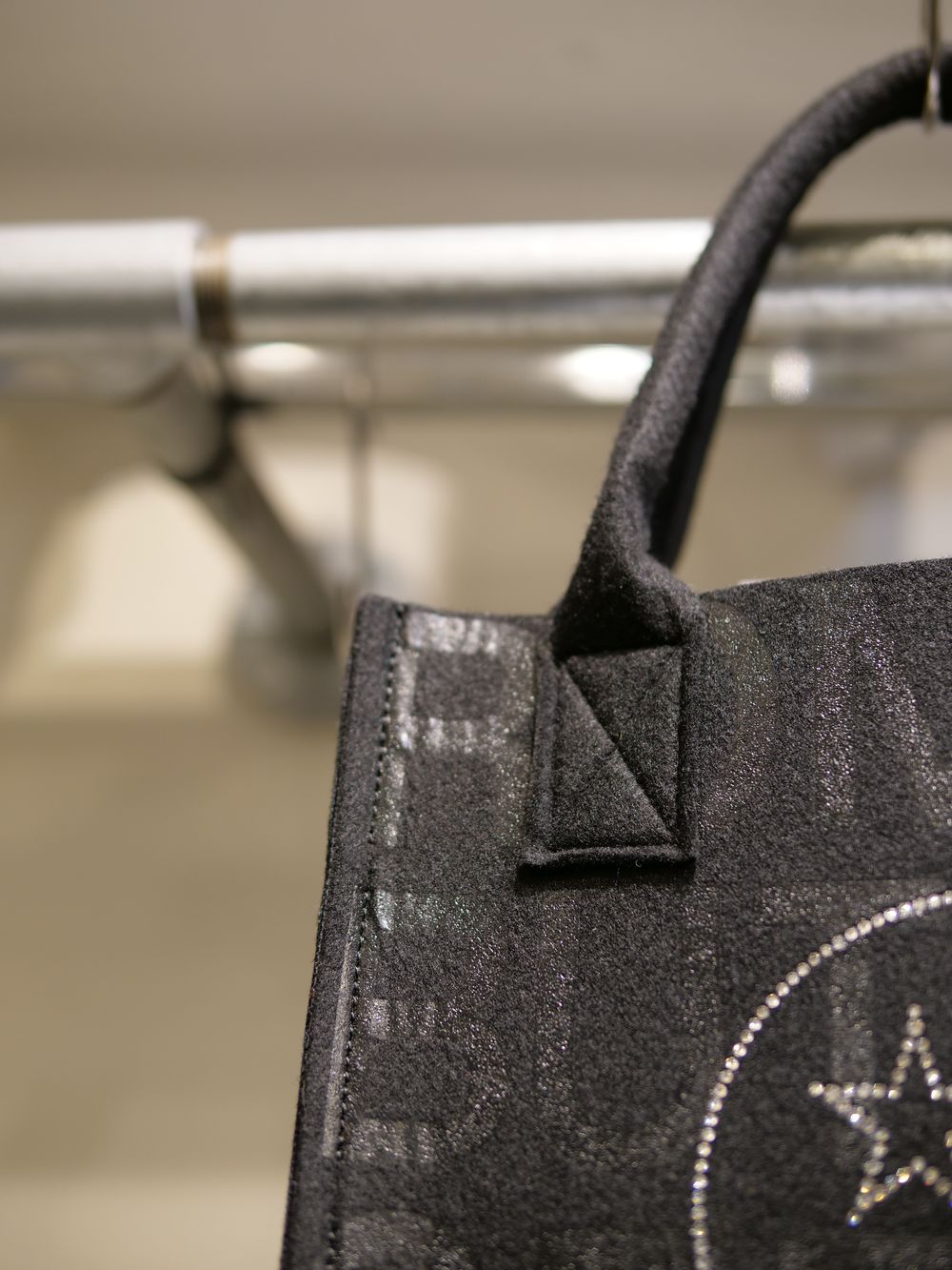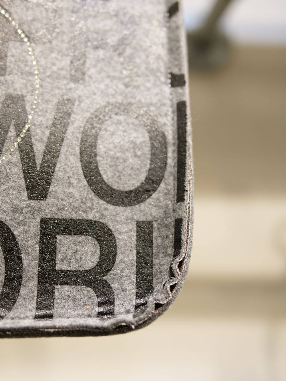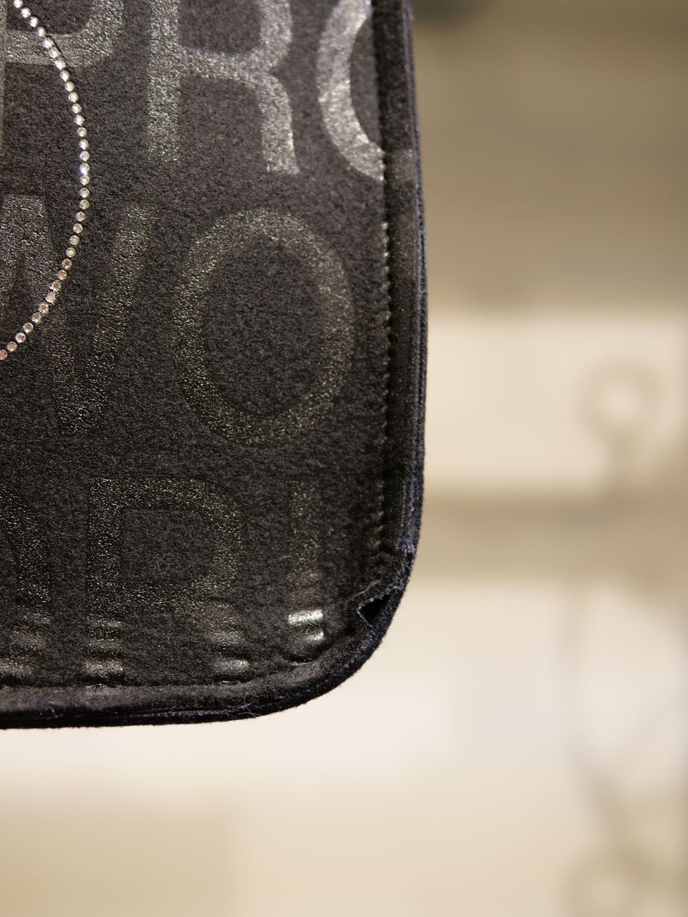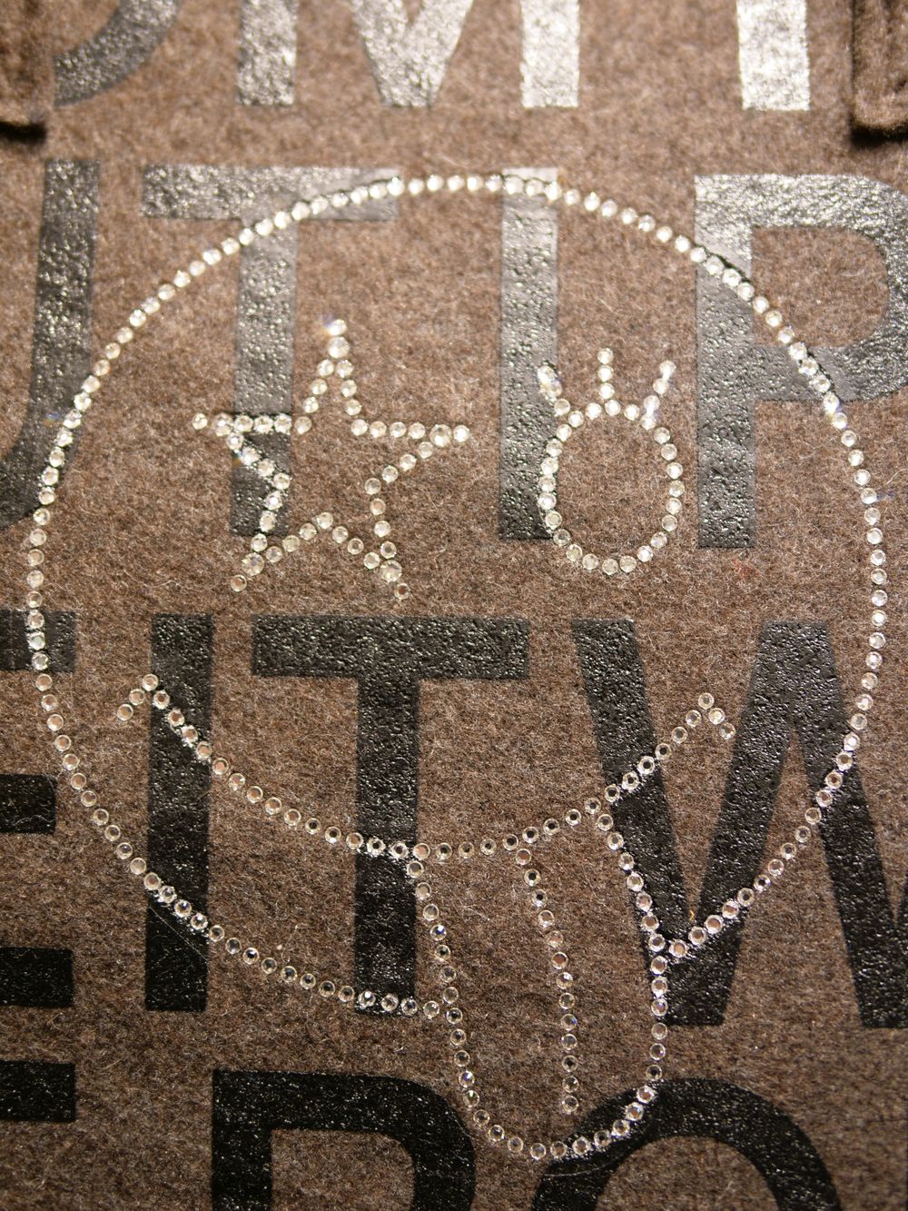 現代アートの作家としてもカルトなファンを持つデザイナーMIKIO氏によるザラザラした独特な風合いのハンドプリントやスワロフスキーが目を惹く作品。