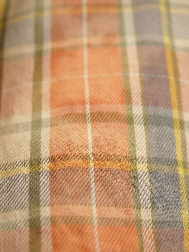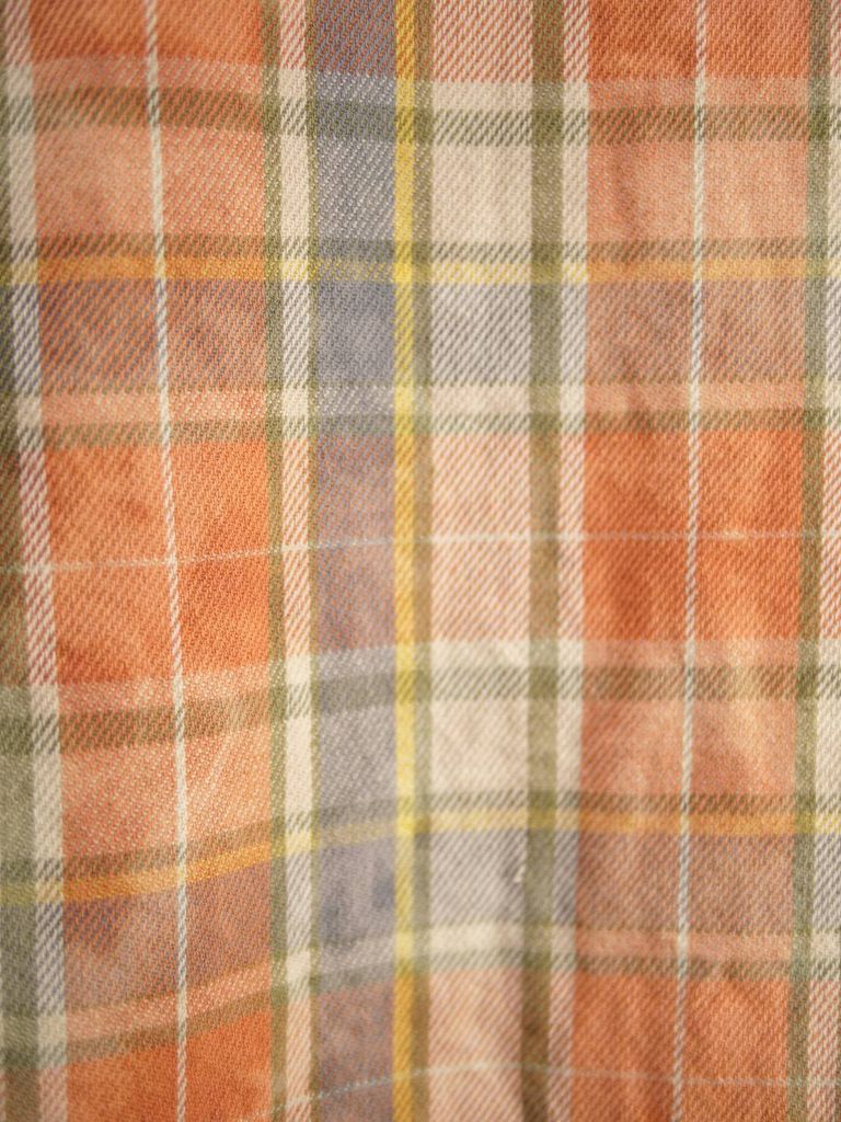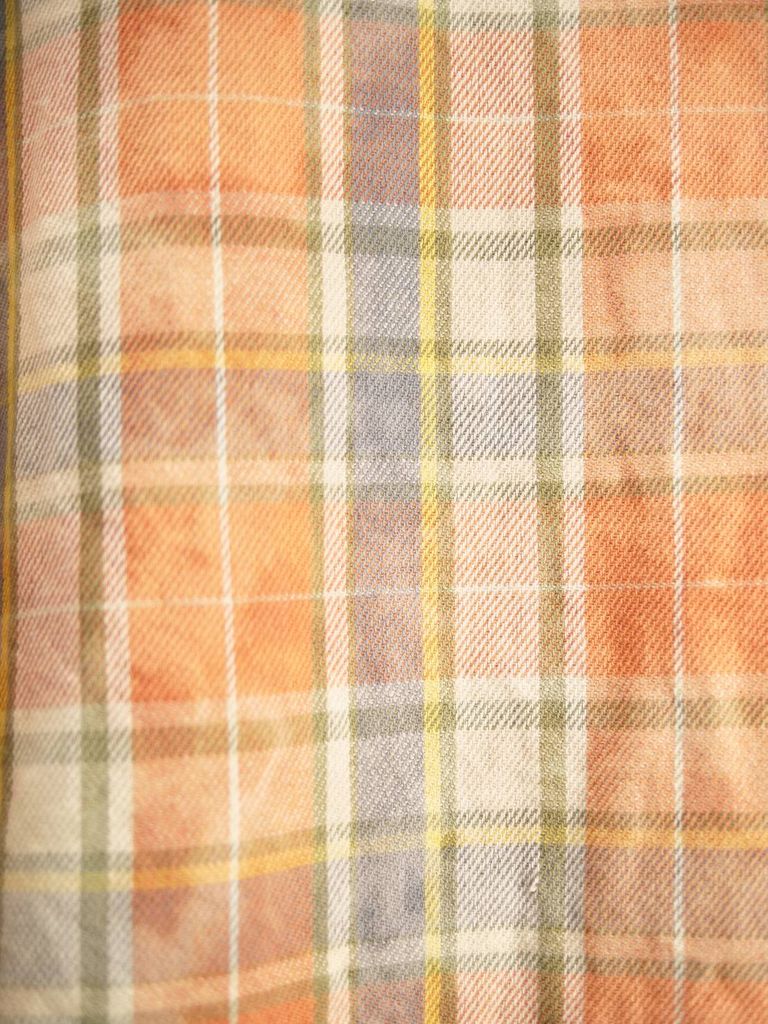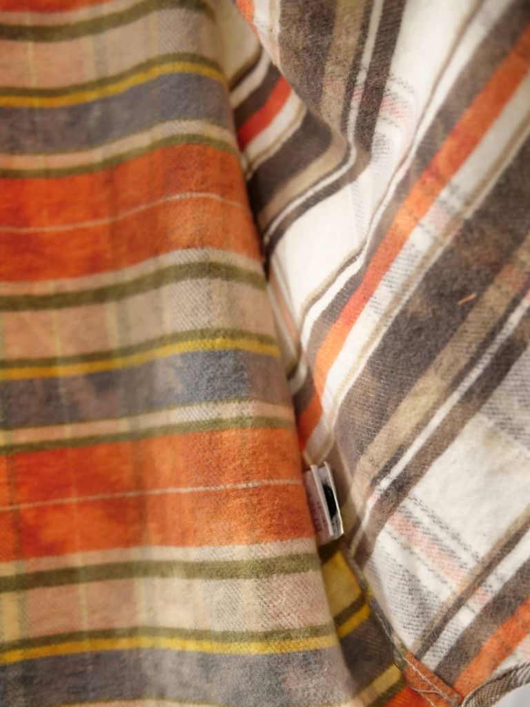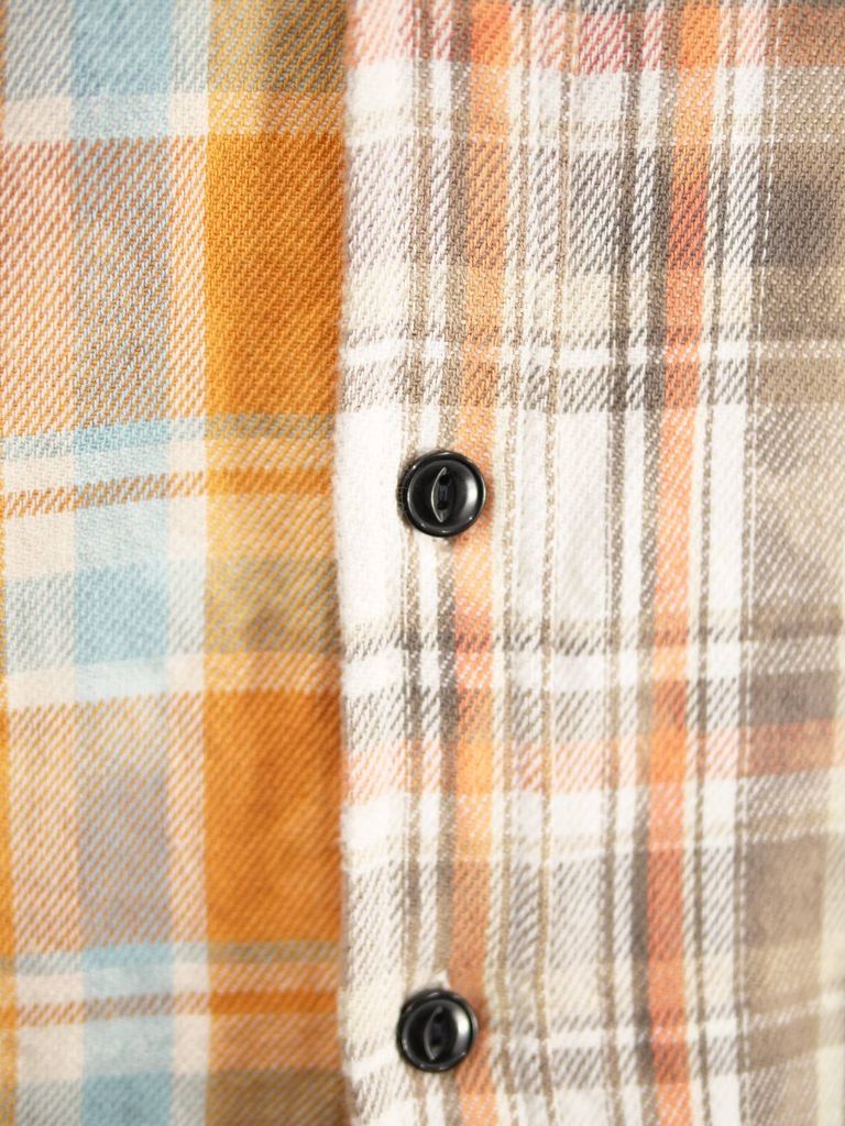 異なるチェック柄をパズルのように組み合わせた、LANDERBLUEならではのチェックシャツ。さらに完成後にタイダイ染めを施すことで、長年着込んだような深みのある風合いを表現しています。