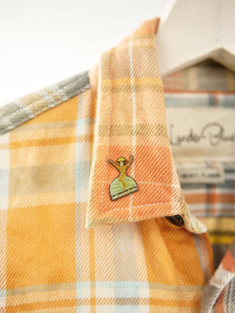 VINTAGEピンバッチがアクセントに