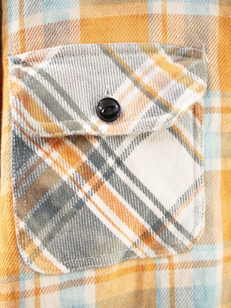 通常のフランネルシャツの約2倍の厚みを持たせた生地を使用し、シャツとしてはもちろん、ライトアウター感覚でも着用可能。裏起毛仕立てにより柔らかな肌触りと高い保温性を実現しました。