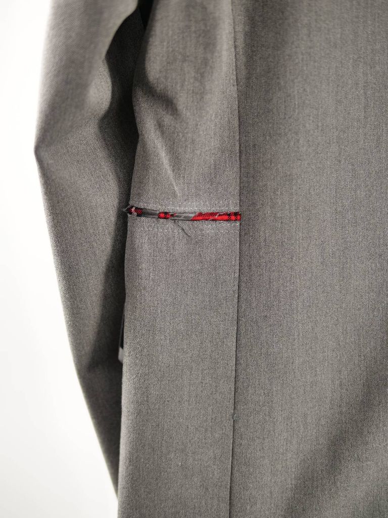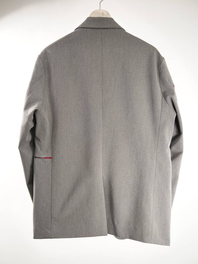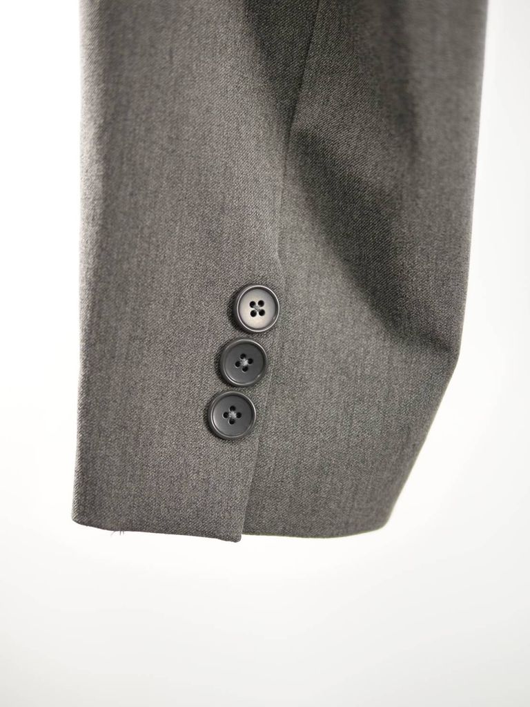 肩のライン、ラペルの角度、ウエストの絞り。すべてが計算され、着る人のシルエットを美しく引き立てる。シャープな印象を放つピークドラペルが、フォーマルな佇まいに上品なエレガンスを添えます。まるで建築のように精密に設計された一着です。