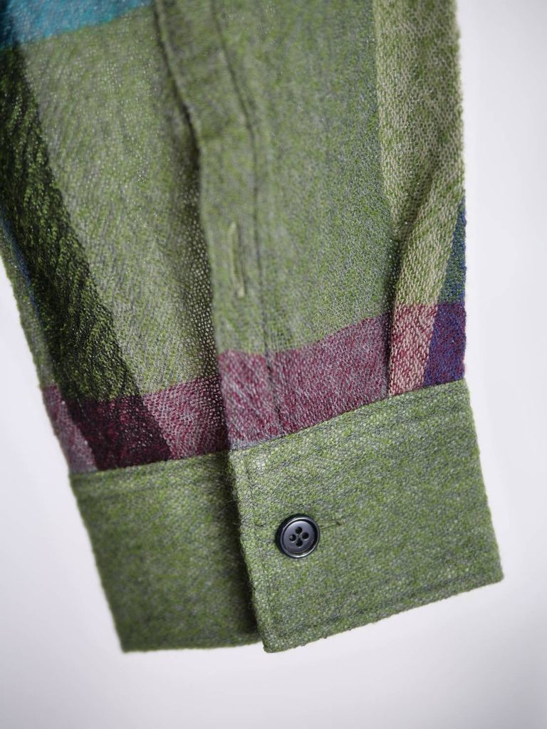 肌触りの良い上質なウールを贅沢に使用したチェックシャツ。素材の良さが、袖を通した瞬間に伝わる一着です。インナーには着丈をやや長く取ったベスト、外側には少し着丈を短く設計したシャツを重ねることで、一枚で自然な奥行きと立体感のあるスタイルが完成します。このシャツの最大の特徴は、計算されたレイヤード構造。重ね着を考えなくても、これ一着でコーディネートが決まる。忙しい大人にとって、頼れる存在です。